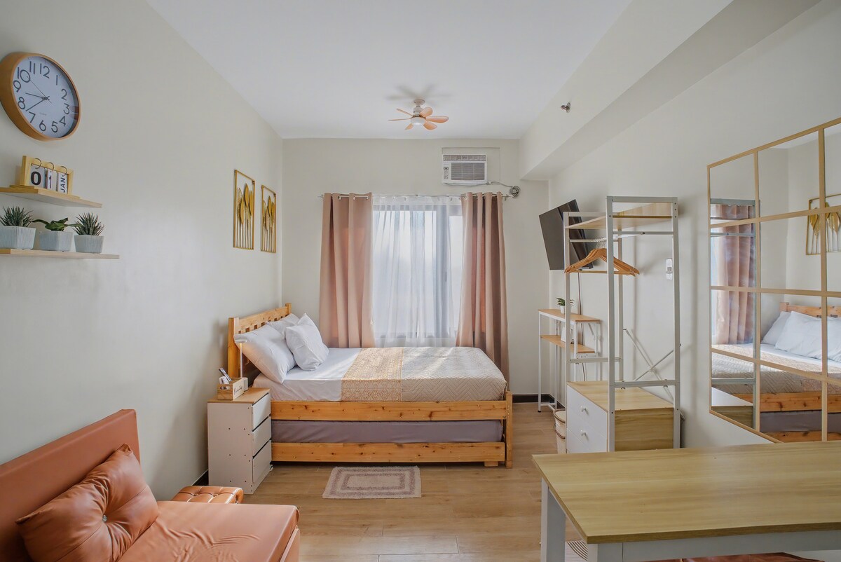 Dobro došli u naš moderni kondominijum sa industrijskom tematikom! Zakoračite u svijet opuštenog i opuštenog izgleda koji savršeno spaja moderni šarm sa industrijskom privlačnošću. Smješten u srcu grada, naš kondominijum nudi lak pristup aerodromu (NAIA), tržnim centrima, restoranima i užurbanom noćnom životu. Bez obzira na to da li dolazite poslovno ili iz zadovoljstva, ovo moderno utočište je savršeno mjesto da se osjećate kao kod kuće tokom boravka. Rezervišite smještaj danas i prepustite se savršenom spoju stila i udobnosti.