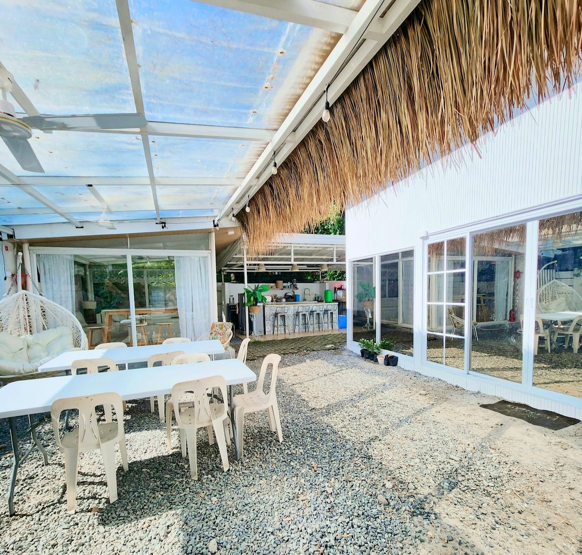 Nestled in the serene and private enclave of El Zamba Villas within Liwliwa, San Felipe, Zambales, Casa Bongco promises a getaway like no other. Casa Bongco can comfortably house anywhere from 8 to 18 persons. All rooms come equipped with air conditioning to ensure your stay is as comfortable as it is memorable. Feel the beach vibe at our outdoor gazeebo and cook your meals in our kitchen. The community offers different activities and restaurants, and we're just 2-3 mins walk to the beach.