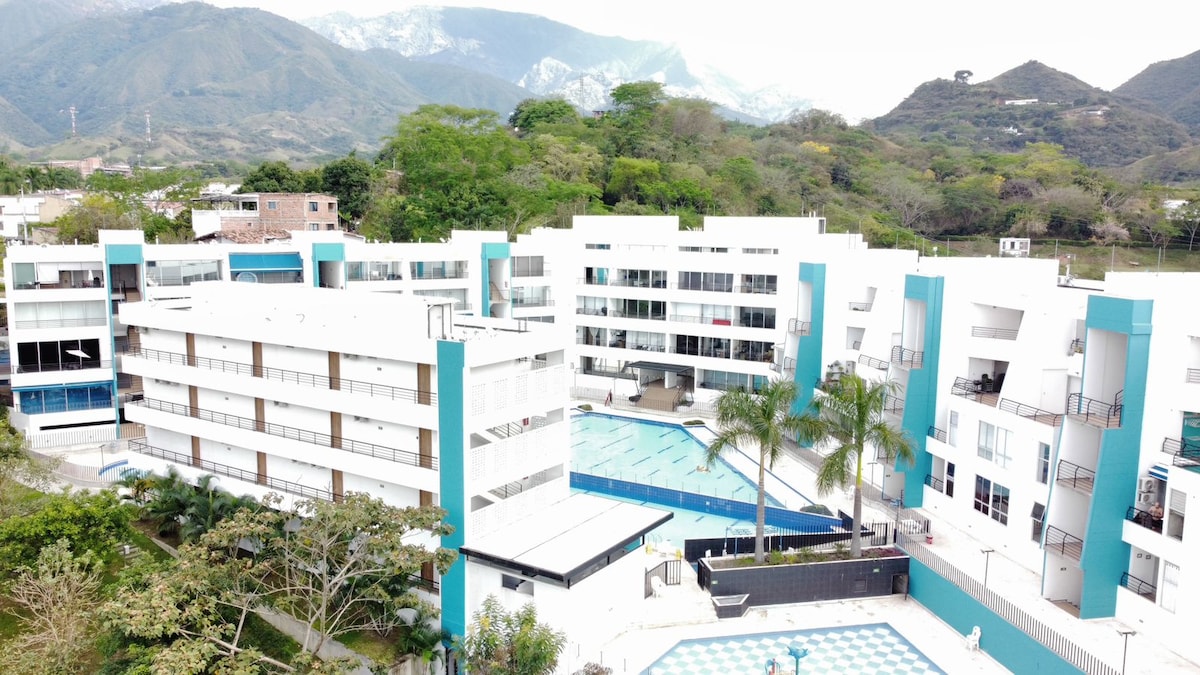 Apartasol en Citadela di Aqua, ubicado en San Jeronimo a tan solo 39 Km de Medellin; Apartamento totalmente nuevo, con vistas a la piscina y montañas, se cuenta con Tv satelital 4K, cocina totalmente equipada, aire acondicionado,etc. El citadela Di aqua te ofrece 6 piscinas tipo cascadas, 6 solarium, tobogán acuático, turco, sauna, yoga, piscinas y juegos acuáticos para niños, cancha de volleyball de playa, cancha sintética de fútbol, cancha de baloncesto, juegos infantiles etc.