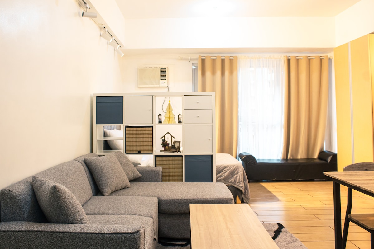 ✨ Free pool use (2 pax) for the month of January, subject to availability and property admin approval. ❗️Pool is closed every Monday. ‼️DISCLAMER - AIRBNB listing only - NO other listing from other platforms __________ Stay cozy at this peaceful condo in the heart of Pasig. Enjoy Netflix on a Smart HD TV, rest on a queen bed, cook in the equipped kitchen, and relax on the couch. Perfect for rainy day bonding, quiet mornings with coffee, fun games, or just unwinding with your favorite people.