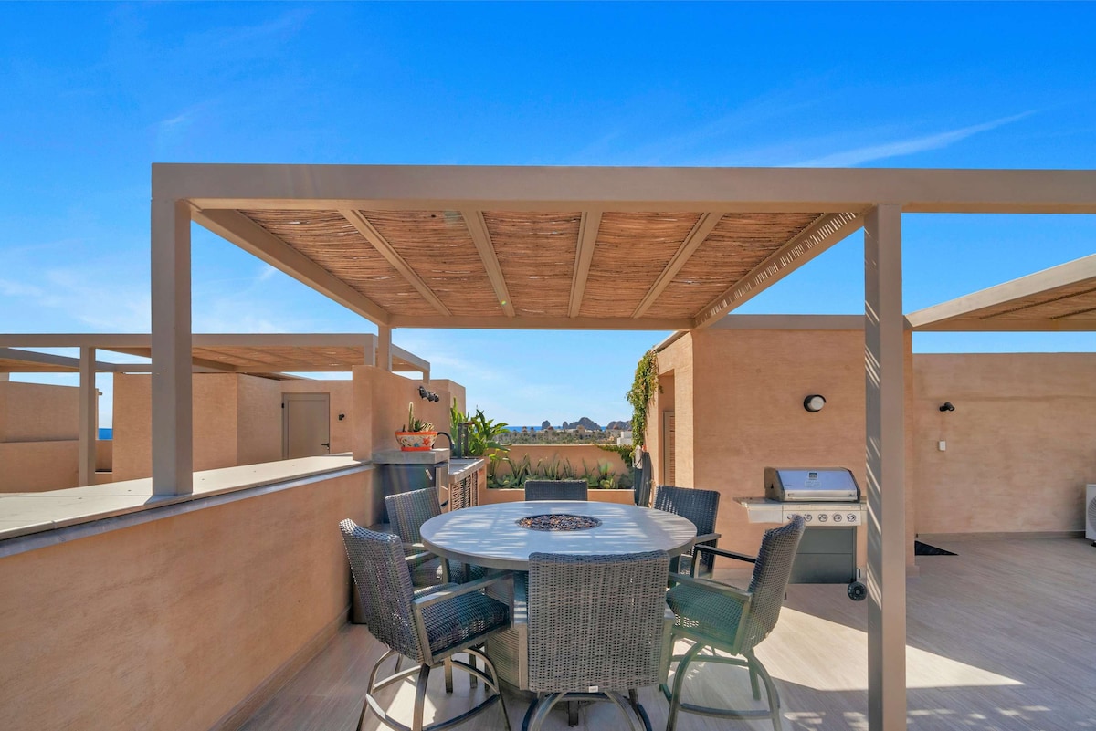 Your private rooftop retreat awaits with fire pit, BBQ, and sweeping Pacific views. This villa sleeps 8 across three spacious rooms, each designed for genuine comfort. Walk to the clubhouse in 3 minutes. Beach in 5 minutes by car. Your family gets full access to pools, gym, padel courts, and your concierge can arrange everything from golf carts to in-villa massages. You will love the beach gear, the fully stocked kitchen and host. Secure your dream vacation at this all-inclusive haven today!