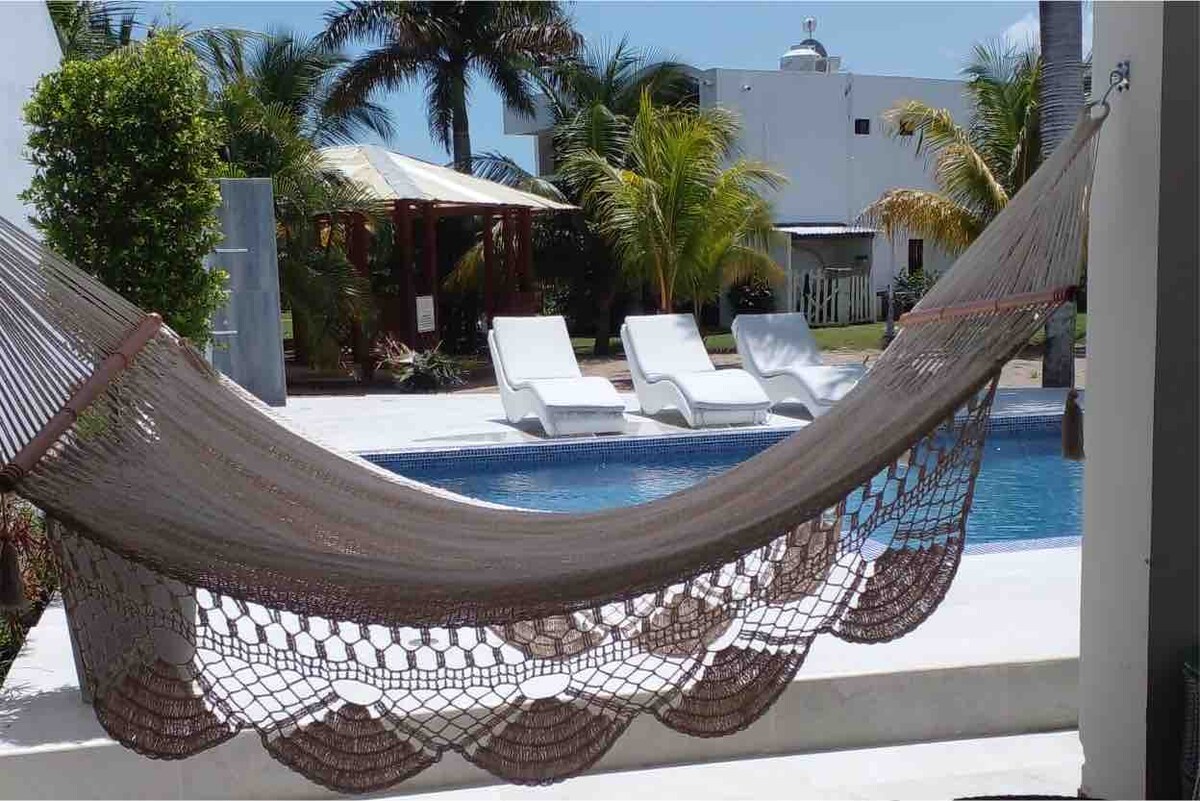 Casa Colibrí 🌺 Modern 4BR w/ Private Pool & Patio in Beach Community Kuća s 4 spavaće sobe udaljena samo 5 minuta hoda od plaže, privatno obezbjeđenje. Savršeno za porodice i prijatelje 🎱Sto za bilijar 🛏️ 4 spavaće sobe 2 kupatila Sve sobe imaju klima-uređaj i plafonske ventilatore. 🍽️ Kuhinja: Potpuno opremljena šporetom, rernom, frižiderom, mikrotalasnom rernom, blenderom i aparatom za kafu. 🌿 Na otvorenom: Privatni bazen, pergola, viseća ležaljka i stolice 📍 dodatno: U blizini restorana i prirode Parking za 2 automobila Wi-Fi + Smart TV 🚫 Ne primaju se kućni ljubimci