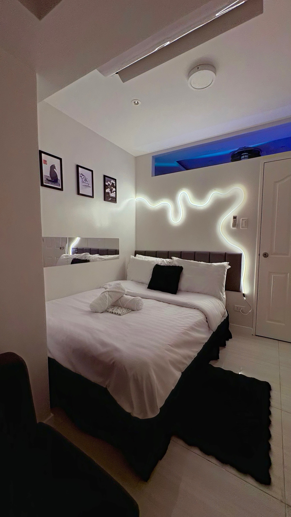 Dobro došli u ovaj udoban studio apartman u Kezon Sitiju, vašem savršenom utočištu! Prostor ima udoban bračni krevet, 55-inčni pametni TV sa Netflix-om, Disney+ i HBO Go-om, uparen sa naslonjačem, kompaktnu, ali potpuno opremljenu čajnu kuhinju i elegantan dnevni boravak savršen za opuštanje nakon cjelodnevnog istraživanja. Sa kafićima, restoranima i atrakcijama na samo nekoliko koraka, bilo da ste ovdje poslovno ili u slobodno vrijeme, ovaj studio obećava divan boravak u srcu grada.