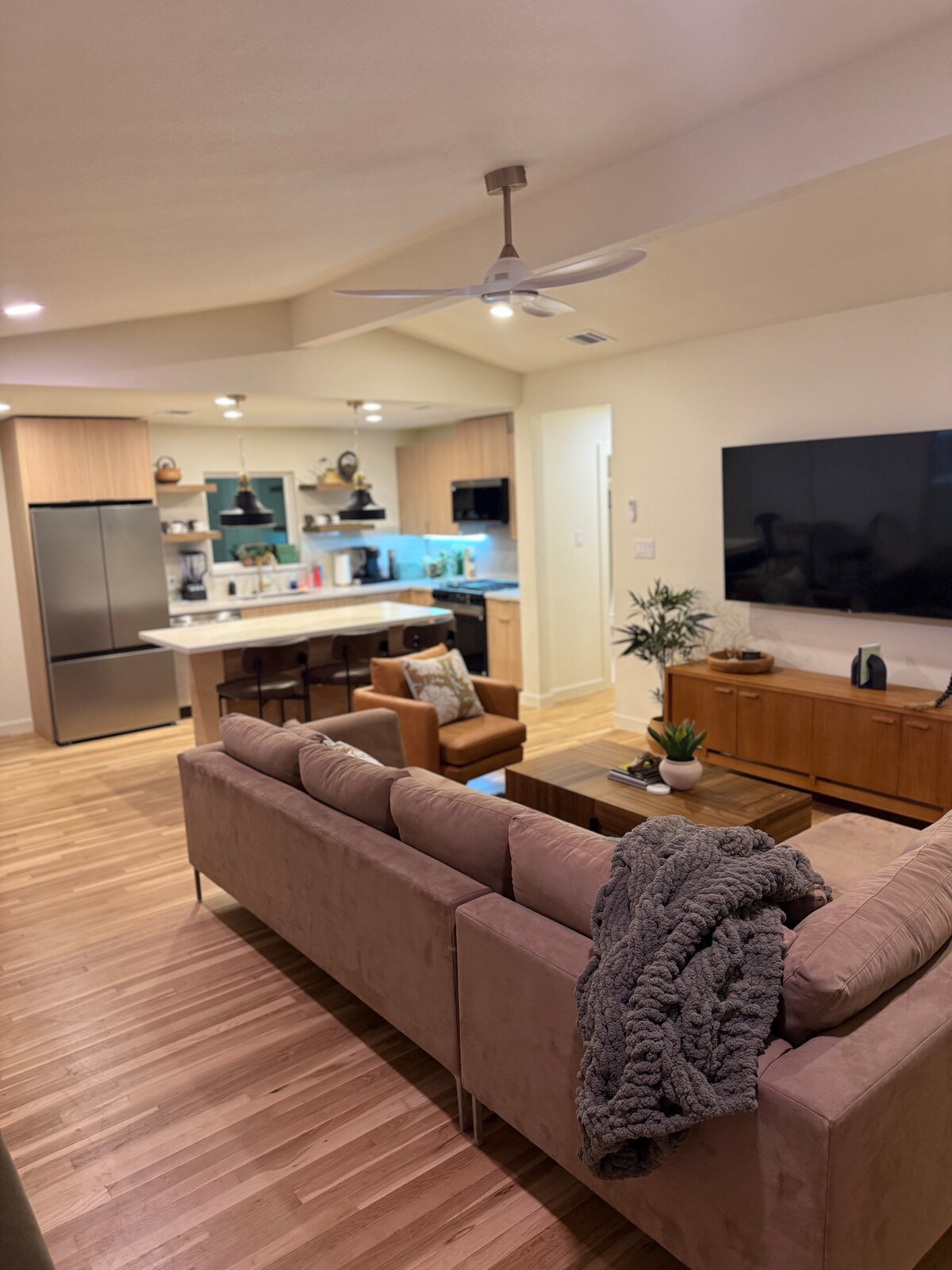 Opustite se u ovom privatnom apartmanu sa 1 krevetom, 1 zasebnim kupatilom sa sopstvenim ulazom i parkingom van ulice. Prošetajte do Državnog univerziteta u Teksasu ili uživajte u restoranima, barovima i muzičkim prostorima u centru San Markosa. Savršeno za opuštajući boravak za odmor, posao ili posetu sa studentom (znate da im nedostajete!). Sadržaji uključuju super udoban krevet, punjač za električna vozila (i za Teslu i za druga električna vozila), aparat za kafu, frižider, mikrotalasnu pećnicu, prostor za rad na računaru, besplatnu mašinu za pranje/sušenje veša i Wi-Fi.