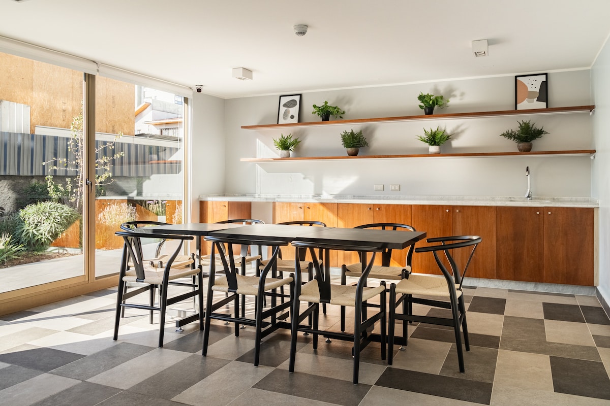 Uživajte u našem modernom, mirnom i centralnom smeštaju koji je okrenut ka severu, dobro povezan sa stanicom metroa, supermarketom, bankama i trgovinom uopšte, u blizini boemije Plaza nameštaja, Nacionalnog stadiona i restorana sa svim vibracijama komšiluka . Ako volite da kuvate, ovo je vaše mesto. Razmišljali smo o kuhinji integrisanoj u prostore sa udobnom i modernom opremom. Uključuje podzemni parking u zgradi.