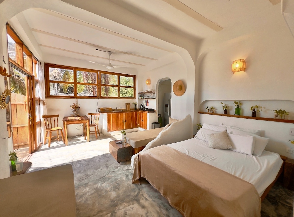 Exclusivo apartaestudio frente al mar, donde la playa llega literalmente a tu puerta. A 40 pasos de tu cama te espera el mar Caribe, en la zona más tranquila y paradisíaca de Rincón del Mar. Disfruta de un espacio amplio, privado, limpio y confortable. Te ofrecemos info para que aproveches al máximo tu estadía: transporte, parqueadero, tours y actividades. ¡Vive la experiencia única de despertar en tu casita frente al mar, junto a deliciosos restaurantes y el mejor spot para un épico atardecer!
