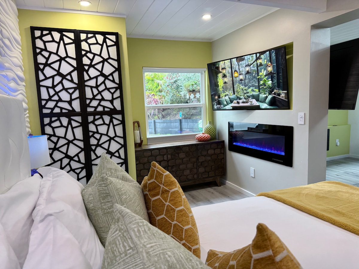 Nedavno renovirani studio apartman „smart“. Privatni veliki dnevni boravak na otvorenom sa hidromasažnom kadom i tušem. Samo jedan blok od pristupa plaži i državnog parka Benicia. Uživajte u divnom centru Benisije i restoranima dok ste ovde. Nalazi se 30 minuta od Nape ili San Franciska i većine istočnog zaliva. Idealno za samce ili parove, ali možete da spavate 4 sa kaučem na razvlačenje. Ponesite električna vozila, na licu mesta je punjač! Veliki TV i HVAC sistem samo za klimatizaciju za boravak i udobnost. Počastite se odmorom danas!