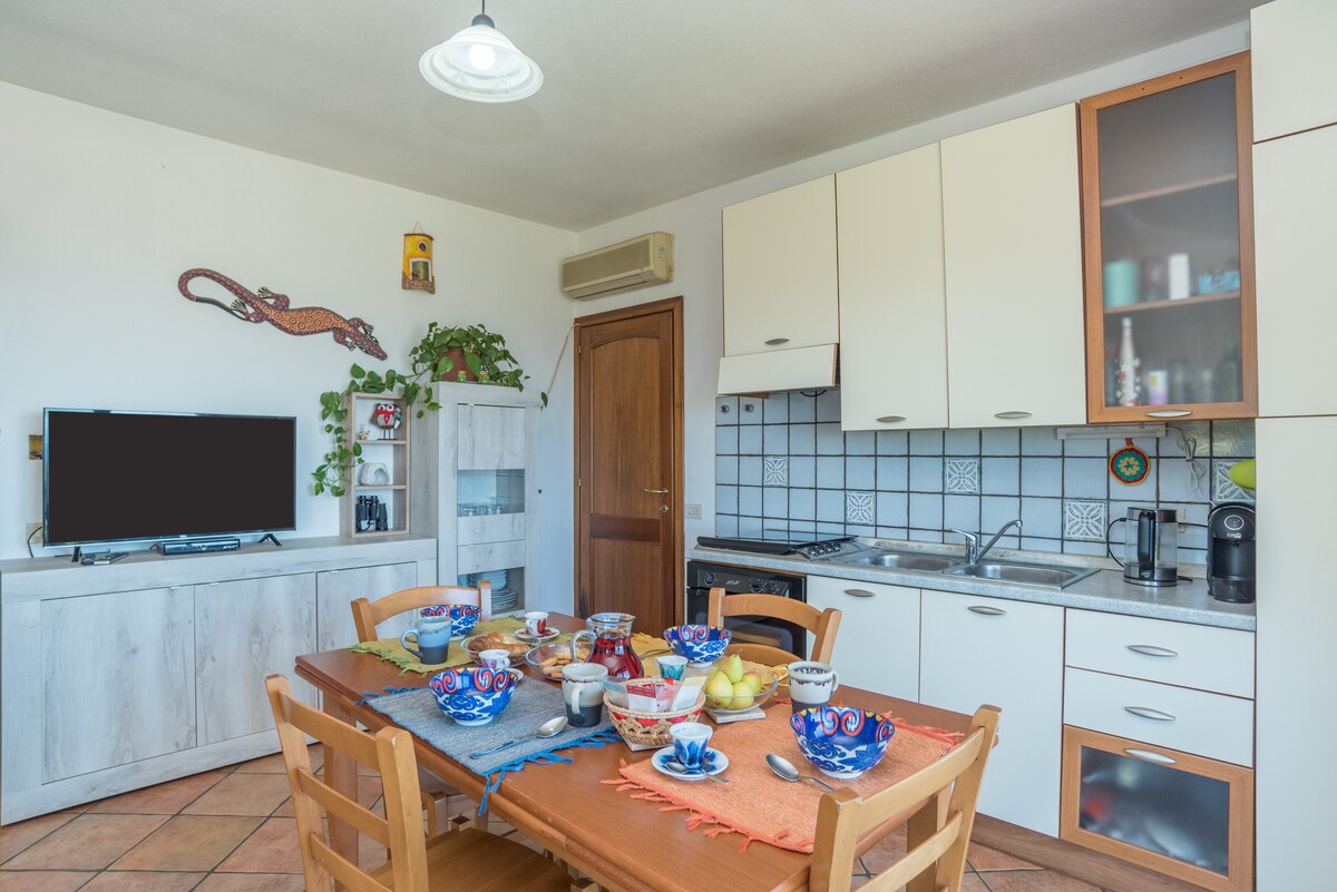 Vrlo svijetao jednosoban stan: ulaz koji vodi u dnevni boravak sa kaučem na razvlačenje, američka kuhinja u uglu, jedna dvokrevetna spavaća soba, jedno kupatilo sa tuš kabinom, fen za kosu, mašina za veš, veranda sa stolom i stolicama za doručak, ručak, večera, u bašti objekta. Za odmor u potpunom opuštanju, usred prelijepih bijelih plaža, na kristalno čistom smaragdnom moru Sardinije.