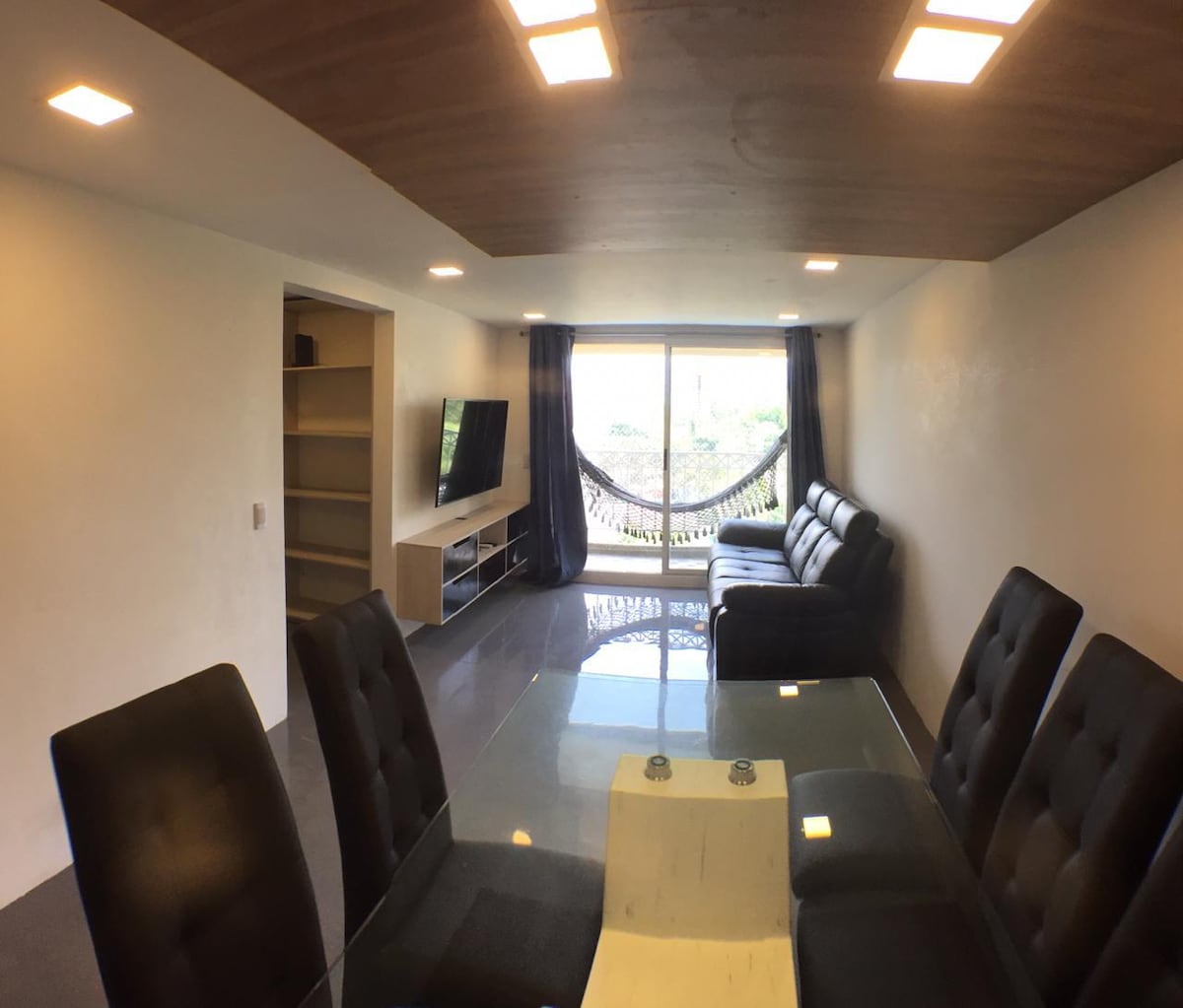 Disfruta de este acogedor espacio que ofrece seguridad y comodidad. Estamos ubicados en un conjunto residencial, en un cuarto piso, con vista al bosque de pinos. Acomodación hasta para cuatro personas, acceso a todas las áreas comunes como la piscina y el pequeño bosque que te encantará. Seguridad las 24 horas . sector tranquilo y rodeado de naturaleza.