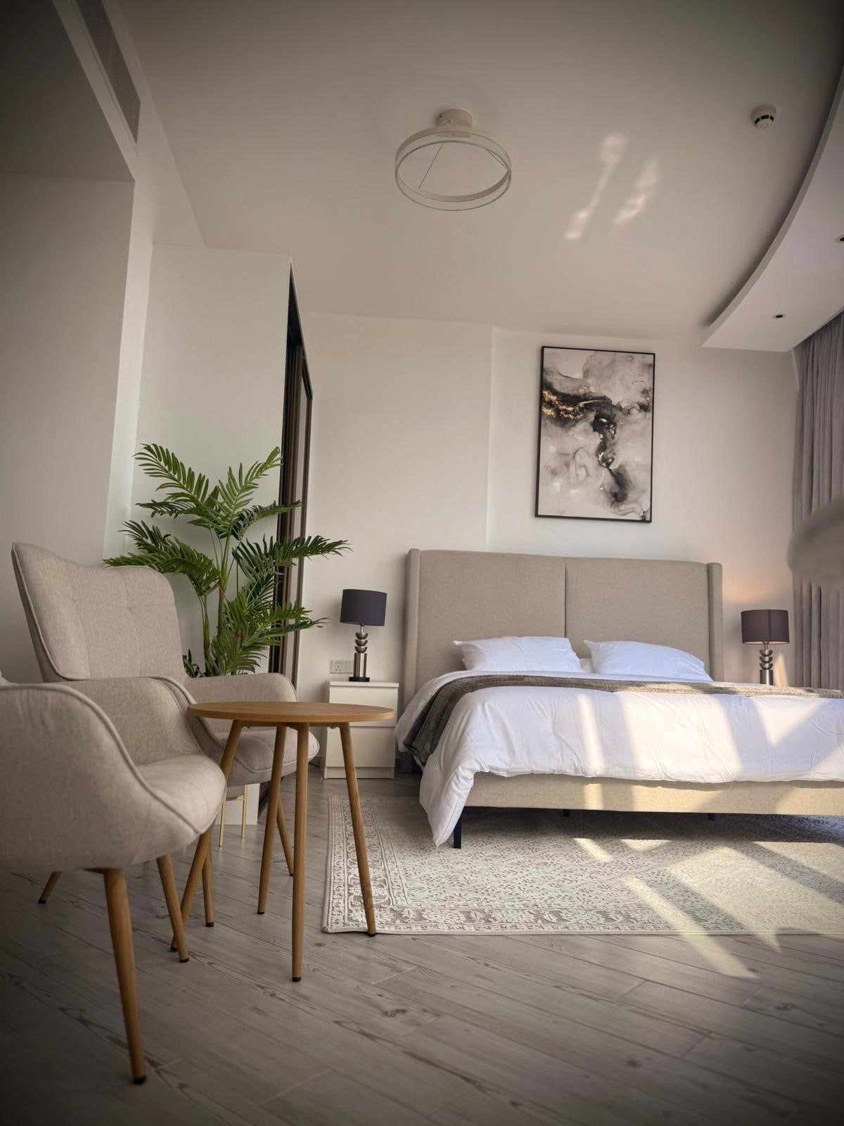 Luksuzni studio apartman u otmjenom tornju u Seefu, opremljen bračnim krevetom, elegantnim privatnim kupatilom, integrisanom kuhinjom, mašinom za pranje veša, aparatom za kafu sa kapsulama, čajnikom sa čajem, besplatnim Wi-Fi-jem i balkonom sa djelimičnim pogledom na more i grad. Sadržaji: otvoreni bazeni, zatvoreni bazen, privatni bazen za žene, javna i privatna teretana, dečje igralište, unutrašnja staza, prostor za roštilj, sala za zabavu (bilijar i PlayStation), luksuzni lobi sa klavirom. Lokacija je blizu centra grada, tržnog centra Seef, Terrace Gardens i Saudijskog mosta. Savršeno za život ili odmor.