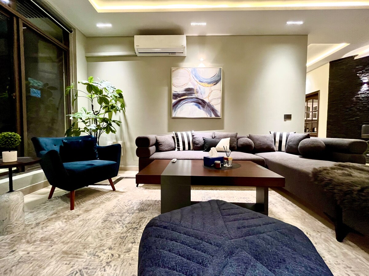 Dobro došli u @blueoakresidences Prostran apartman od 140 kvadratnih metara u F-11/1 Islamabadu sa 2 spavaće sobe sa kupatilom, svaka sa privatnim balkonom, toaletom, UPS rezervom, brzim Wi-Fi mrežom, samostalnom prijavom i 58-inčnim pametnim TV-om. Kuhinja, topla voda, besplatan parking, lift koji radi non-stop. Za grupe veće od 4 osobe, obezbijeđena su 2 dodatna dušeka na podu za najviše 6 gostiju. Kolevka je dostupna na zahtev za 3+ noćenja (5000 PKR). Koraci od Loafology, Nando's, Asian Wok, KFC, Al-Fatah. Park prikladan za porodice je odmah ispred.