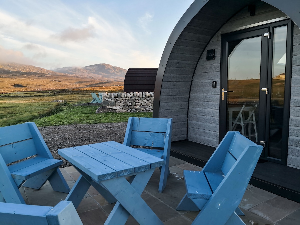 Ponovo se povežite sa prirodom na ovom nezaboravnom odmoru. Predivna, skrovita kapsula sa bračnim krevetom i kaučem na razvlačenje sa bračnim krevetom, tuš kabinom, kuhinjom, uključujući šporet, ploču za kuvanje i frižider. Eagle Pod ima privatnu terasu sa spektakularnim pogledom na planine. Idealno za one koji uživaju na otvorenom. Eagle Pod je udaljen deset minuta hoda od slikovite plaže Sango i centra sela Durness. Tri kilometra od vrhunskog golf terena Durness sa 9 rupa i pet minuta hoda od pećine Smoo koja oduzima dah.