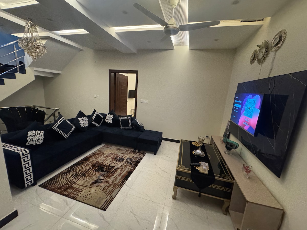 Moderan gornji dio sa 3 spavaće sobe u Bahria Town Phase 8, dizajniran kao butik hotel. Osjećajte se kao kod kuće, ali sa modernim detaljima i hotelskom udobnošću od 5 ⭐️. 🛌 Svaka spavaća soba ima veliki bračni krevet, privatno moderno kupatilo, inverter klima-uređaj, pametni TV od 55 inča sa Netflix-om i drugim aplikacijama za strimovanje. 💠 Uživajte u brzom Wi-Fi mreži, besplatnom doručku na zahtev, potpuno opremljenoj kuhinji, perionici veša u sklopu objekta i toploj vodi non-stop. Bezbedan, ograđen kompleks sa video-nadzorom, električnom ogradom sa spoljne strane, pomoćnikom na licu mesta non-stop i besplatnim parkingom.