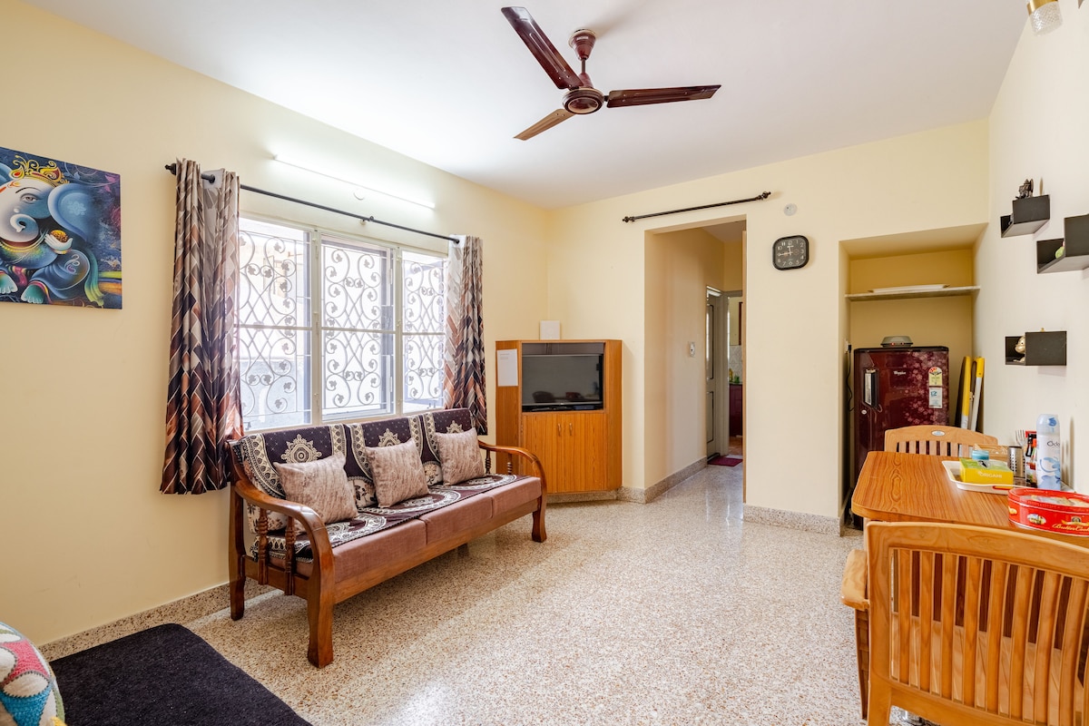 🏡 Dobro došli u svoje udobno utočište u srcu Bangalora Smještena ispod drveta manga u mirnom, otmjenom parku Kumara, ova nedavno renovirana dvosobna gostinjska kuća nudi udobnost, privatnost i šarm - idealno i za kraće i za duže boravke. Uživajte u mirnom okruženju samo nekoliko minuta od vrhunskih kafića, restorana, bolnica, hotela s pet zvjezdica i golf terena Bangalore. Bilo da se radi o poslu ili odmoru, ovaj pažljivo uređeni prostor je vaš odmor u gradu.