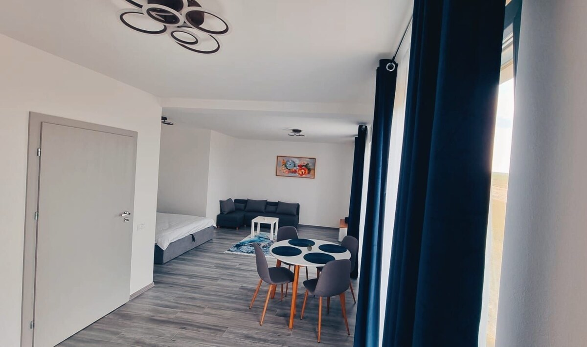 Čekamo vas u našem stanu, posebno dizajniranom za vas i vaše najmilije. Želimo da se osećate kao kod kuće čak i daleko od kuće. Besplatan parking. Stan se nalazi na 1. spratu od 3,u novom bloku stanova sa liftom, završen 2022. godine. Stan se nalazi u Oradei (Sânmărtin), u mirnom području, a blok je okružen kućama. Samo 10 minuta od termalnih kupatila (Baile Felix, Aquapark Nymphaea). Čekamo da provedete praznik koji će vam naplatiti energijom i dobrim raspoloženjem.