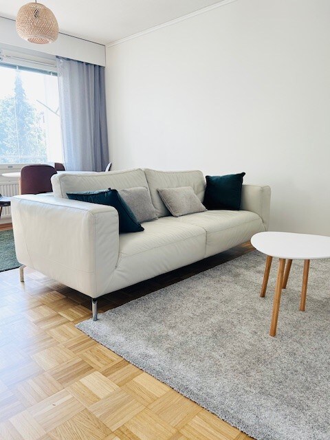 Izuzetno funkcionalan i potpuno namješten stan koji se nalazi na lijepoj zelenoj površini između centra i aerodroma. Ovo je idealna baza za kraći ili duži boravak u Helsinkiju. Lep ambijent i kvalitet koje nazivam osnovnim plusom. Stan ima praktičan tlocrt sa dnevnim boravkom i spavaćom sobom koja se nalazi na svakom kraju, a kuhinja, hodnik i kupatilo u sredini. Nalazi se u blizini voza (10 minuta), autobuskih stanica (2 minuta) i prodavnica hrane non-stop. Besplatan parking!