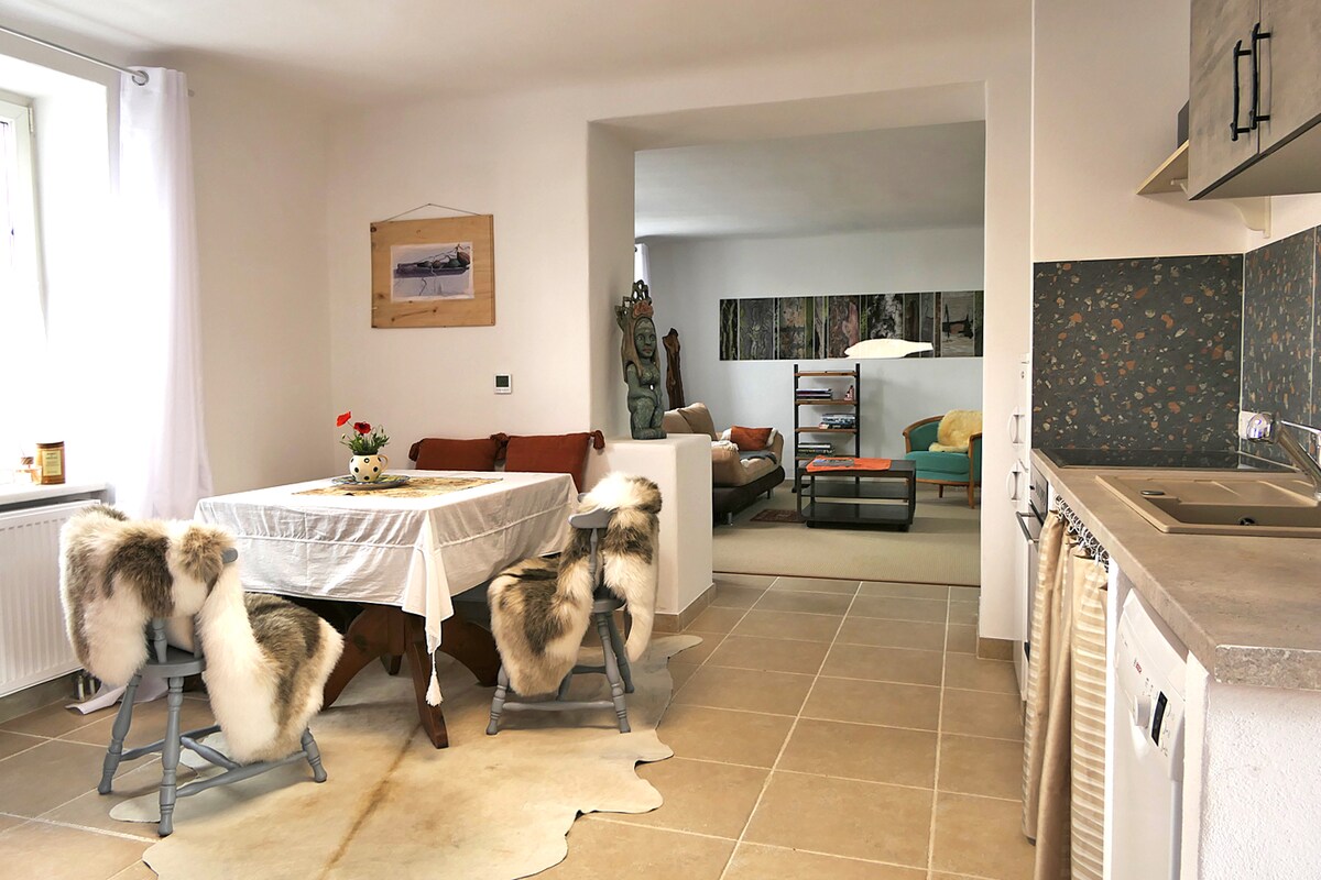 38 svijetlih i udobnih kvadratnih metara sa sopstvenim ulazom, zaštićenom baštom, saunom, stonim tenisom, planinarenjem od Gänsgrabena do Heidenstatta ... Bicikli za vožnju Heurigenom, brodovi za reku i jezero i dostupni su od nas. A Josephsbrot, zaista dobra pekara sa kafićem je u selu! Suzan je trener za mlade. Vodim posljednju tradicionalnu radionicu ogledala u Austriji kao proizvođač ogledala. Radujemo se vašem skorom dolasku!