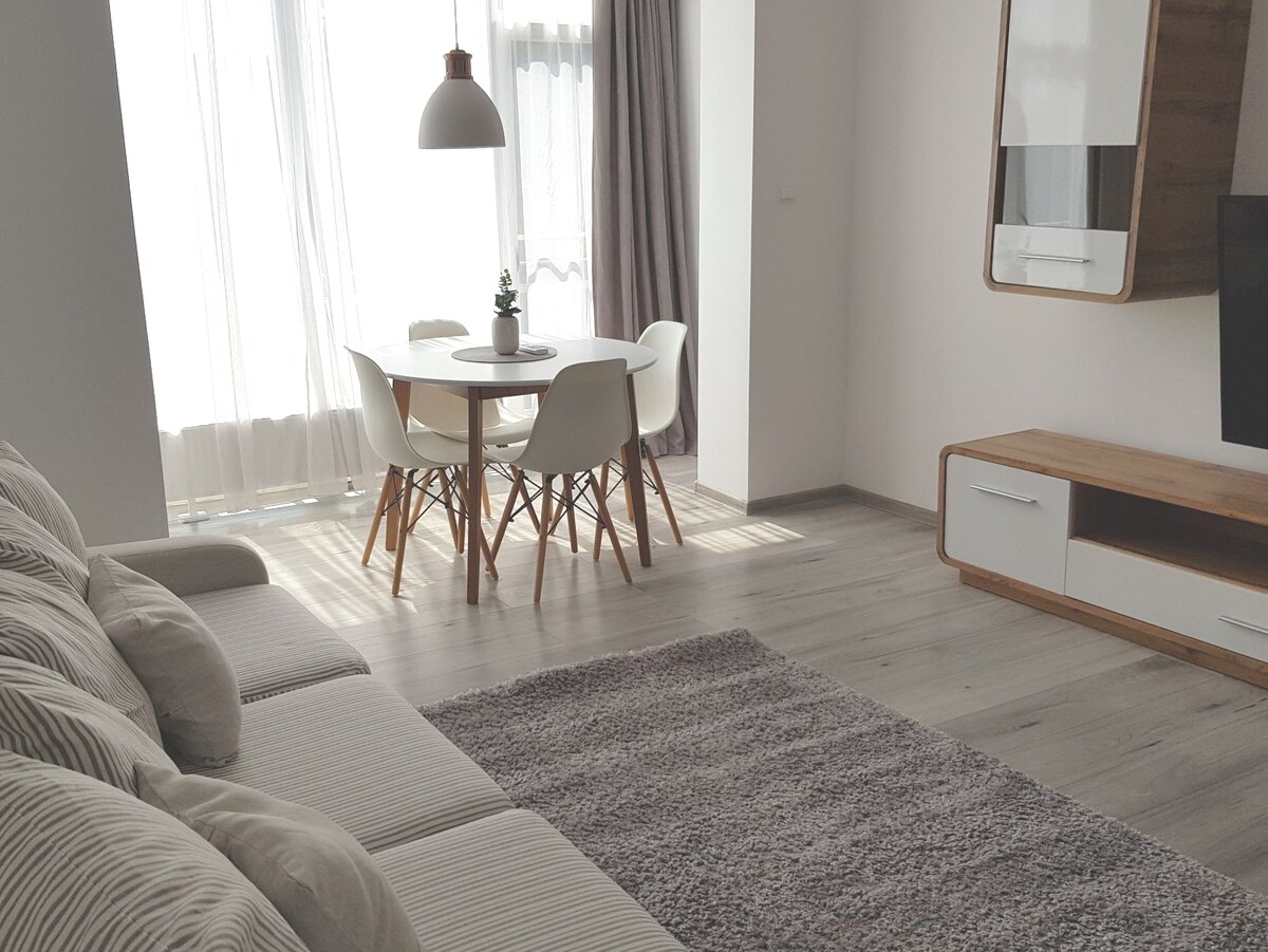 Dobro došli u naš moderni i udobni stan, koji se nalazi u gradu Iernut, nedaleko od Targu Muresa. Idealan za opuštajući odmor ili duži boravak, ovaj dvosobni stan nudi vam sve potrebne sadržaje kako biste se osjećali kao kod kuće. Želimo da vaš boravak bude što prijatniji i udobniji. Stan se nalazi u blizini prodavnica. 20 minuta od Targu Muresa, 15 minuta od aerodroma i 70 minuta od Kluž-Napoke