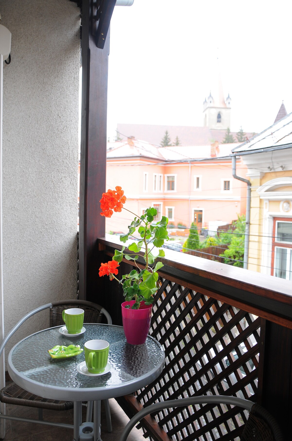 Naš stan je samo nekoliko koraka od Pjata Mare (Veliki trg) u Sibiju. Smješten u istorijskoj zgradi staroj 200 godina, ima udobnu spavaću sobu, dnevni boravak sa pametnim TV-om (Netflix), brzi Wi-Fi i potpuno opremljenu kuhinju sa aparatom za kafu, šporetom i mašinom za pranje veša. Centralno grijanje održava stvari toplim zimi, a klima-uređaj je dostupan tokom ljeta. Mala privatna terasa pruža dodatni šarm - savršen za opuštanje nakon cjelodnevnog istraživanja grada.
