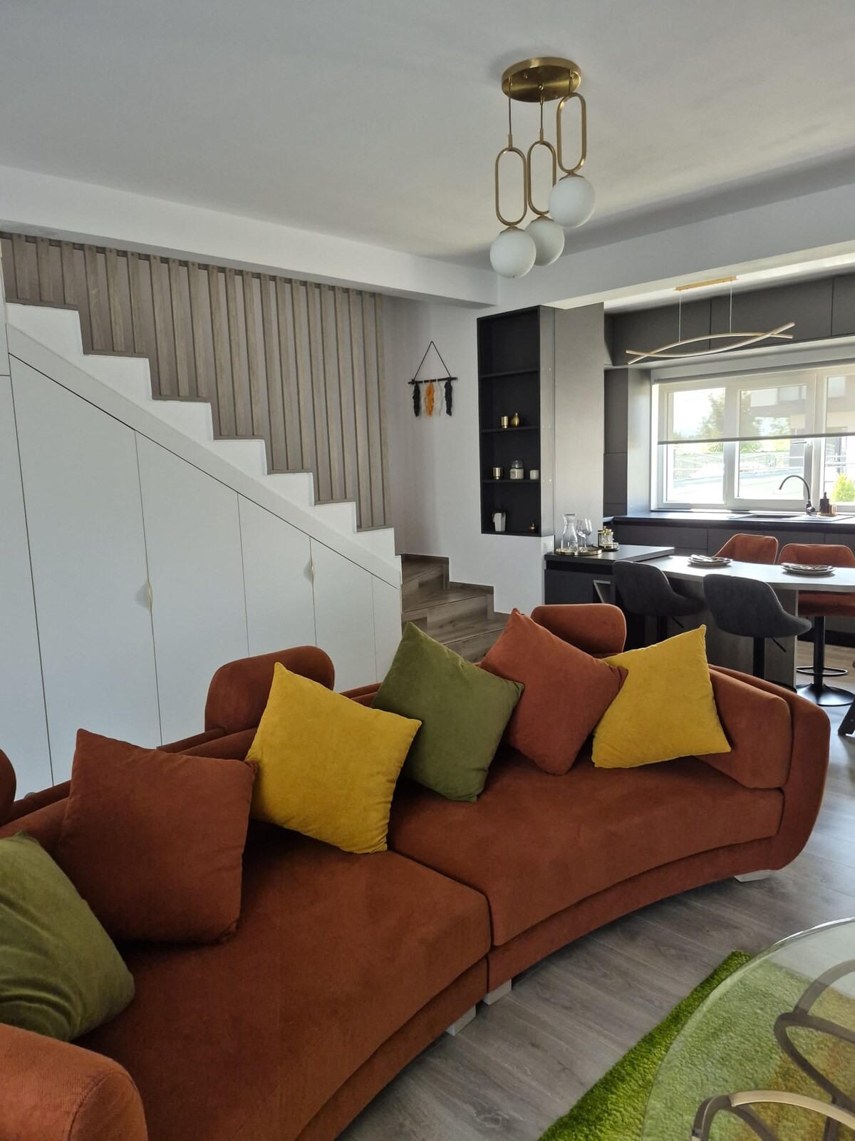 Dobro došli u svoje udobno utočište u Brašovu! Ovaj potpuno opremljen jednosobni stan spaja udobnost i stil, savršen za opuštajući boravak. Nalazi se samo 15 minuta od centra grada i 5 minuta od tržnog centra Coresi, sa mnoštvom supermarketa u blizini. Uživajte u prirodnim teksturama, toplom osvjetljenju i svemu što vam je potrebno za doživljaj daleko od kuće. Idealno za parove, putnike koji putuju sami ili porodice (kauč u dnevnoj sobi i dječiji park pored zgrade).