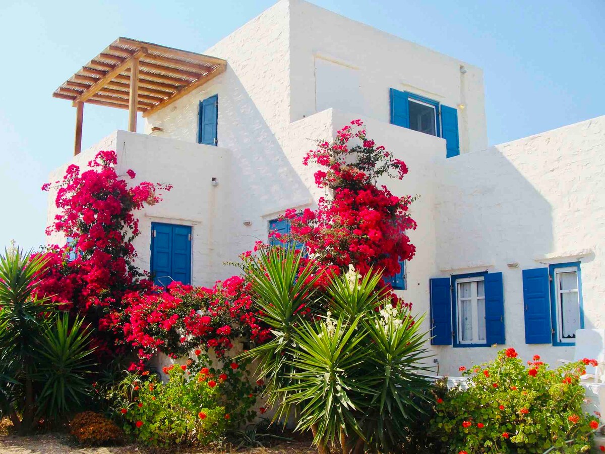 Ovo je čarobna vila Paros u kojoj ćete se izležavati ispod zasjenjene terase, čarobnog mjesta, sa divnim pogledom na more danju i pogledom na mjesec i zvijezde noću. Samo nekoliko minuta hoda od idilične pješčane plaže, vjerovatno najprikladnije za porodice na ostrvu, boravićete u mirnoj oazi Paros Villa Myrtia.