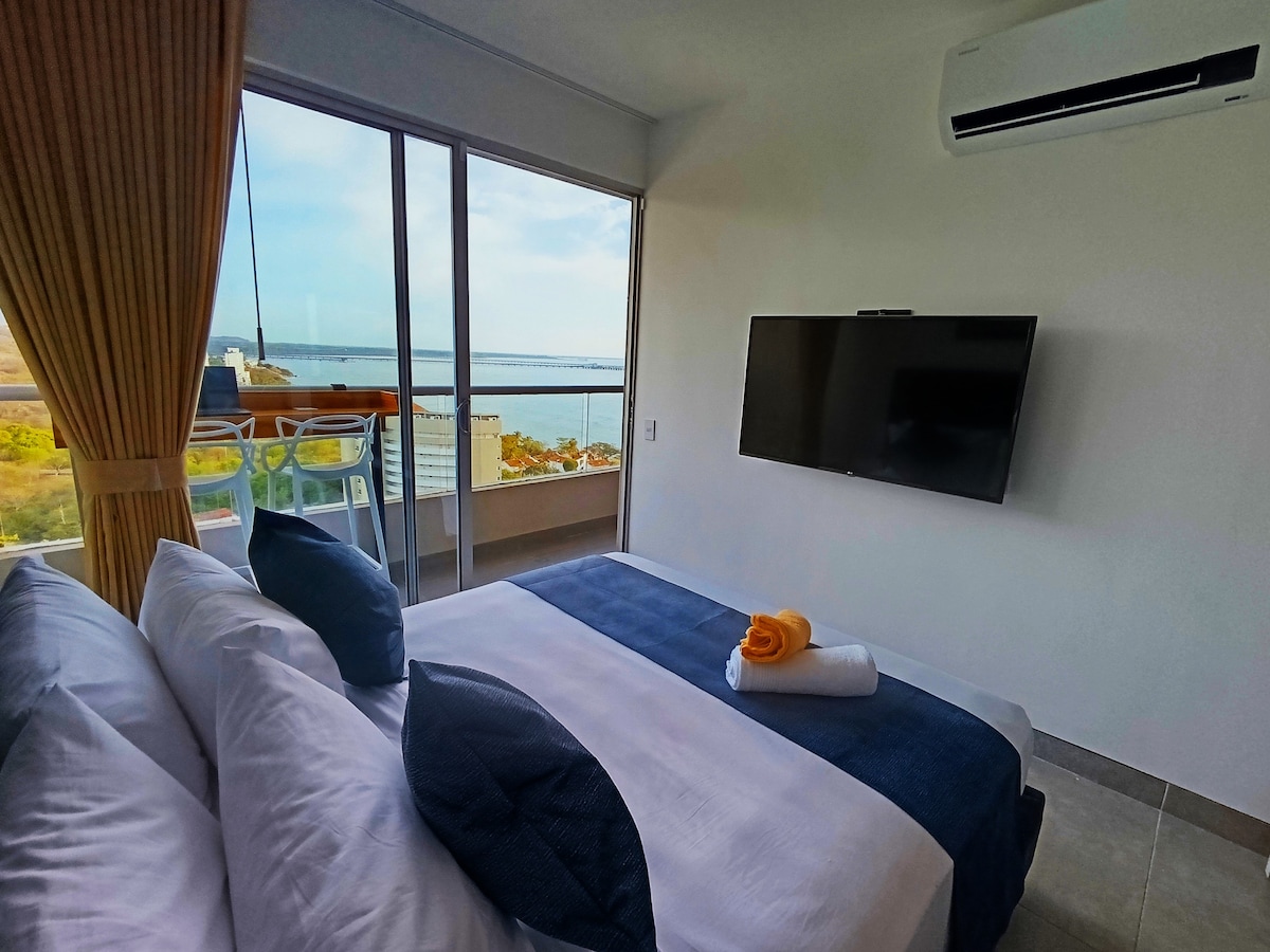 Deluks novi apartman sa jacuzzijem na balkonu. Nalazi se u najboljem i ekskluzivnom sektoru Santa Marte. Nalazi se pored hotela Hilton, hotela Irotama i hotela Mercure. ima sve što vam treba za nezaboravan odmor. imate kuhinju opremljenu frižiderom, indukcionim šporetom, loncima, aparatom za kafu, kuhinjskim priborom, mikrotalasnom pećnicom i loncem za fritezu. Udaljen je 8 minuta od aerodroma i veoma je blizu tržnog centra Zazue. iskoristite popust i rezervišite odmah.