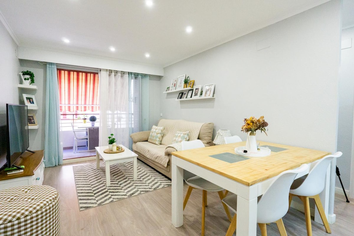 Udoban svijetli stan, sa bazenom,parking mjesto 250 m od plaže . Potpuno opremljene, 2 sobe sa velikom terasom, zajedničkim bazenom i parkingom. Vrlo dobro lociran, nije potreban automobil za odlazak u centar ili plaže Vrlo blizu tržnog centra, Mercadona. Stambena četvrt stanova je veoma mirna i blizu svega. Aerodrom je udaljen 15 km, oko 15 minuta vožnje vozilom. Odlično za parove, poslovna putovanja, porodice (sa djecom) i male grupe