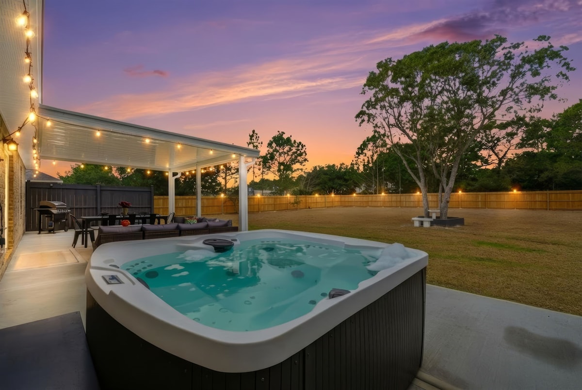 Pobjegnite u raj inspirisan Balijima u zalivskom povjetarcu! Naš novouređeni dom spaja eleganciju ostrva sa opuštenom atmosferom plaže, savršenom za porodice ili grupe koje traže luksuzno utočište. Opustite se u našoj oazi u dvorištu sa najmodernijom hidromasažnom kadom za 7 osoba, bazenom dubine 2,5 metra i suvom saunom. Samo nekoliko minuta od prelijepih plaža, ovaj smještaj nudi svu udobnost i sadržaje za nezaboravan boravak.