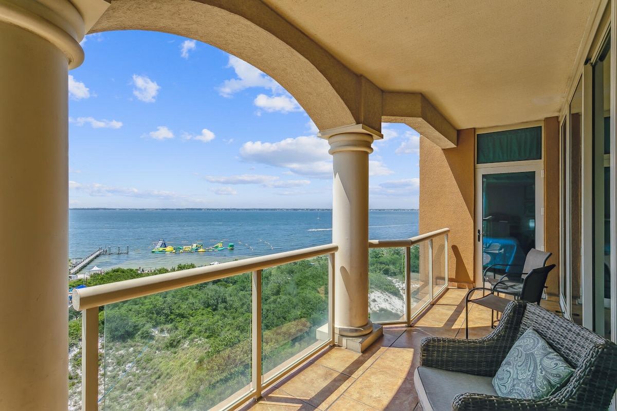 Dobro došli u moj život iz snova u Portofinu! Imala sam sreću da živim u raju na plaži i sada ga dijelim sa vama! To je rijetka, renovirana jedinica na nivou PentHouse-a u najboljem odmaralištu na plaži Pensakola! Nevjerovatan pogled na zaliv s najvišeg sprata s izuzetno visokim plafonima! Provedite dan na plaži ili uživajte u mnogim sadržajima koje odmaralište nudi. Vidimo se u raju! *Nije prikladno za grupe koje žele da organizuju zabave ili goste mlađe od 25 godina bez pratnje* Imajte na umu da beli nameštaj zahteva dodatnu pažnju kako bi se izbegle naknade za oštećenje