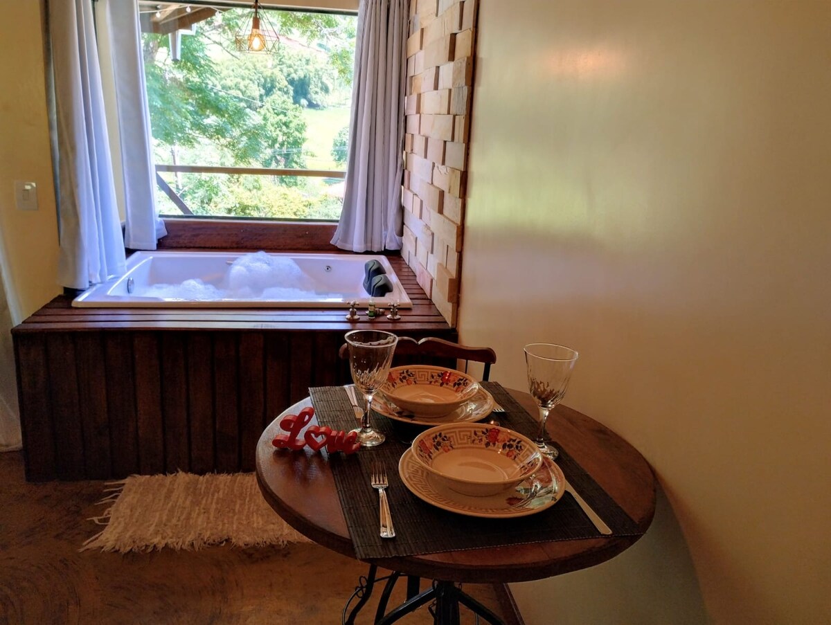 Nalazimo se u mirnoj i tihoj oblasti Santo Antônio do Pinhal, 1,5 km od zemljanog puta u centru grada... Vrhunska planinska kuća ima nevjerovatan pogled na planine i šumu. Planinska kuća ima dvostruku hidromasažnu kadu, koja se nalazi u staklenoj, klimatizovanoj konstrukciji, brzi Wi-Fi, mini bar i Smart TV, sa uslugama strimovanja. Doručak se poslužuje u samoj planinskoj kući.