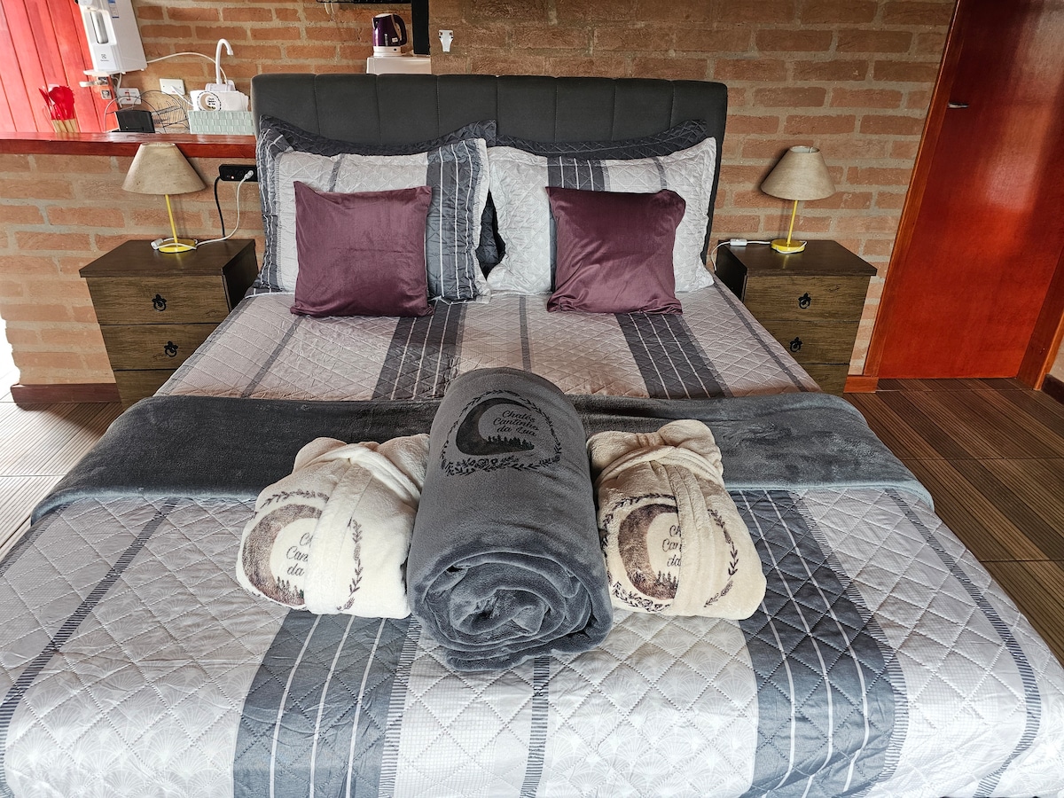 Chalé cantinho da Lua 1 (chalé lua cheia) Planejamos cada detalhe do chalé para proporcionar aos hospedes uma experiência incrível,a banheira de hidromassagem com cromoterapia tem vista para as montanhas,cozinha completa com geladeira, a varanda com Deck com piscina privativa. wi-fi 1 giga(ideal para home office) O chalé fica a 3 minutos do centro da cidade Aceitamos animais de pequeno porte,sem nenhuma cobrança adicional. temos serviço de café da manhã c/ valor a parte