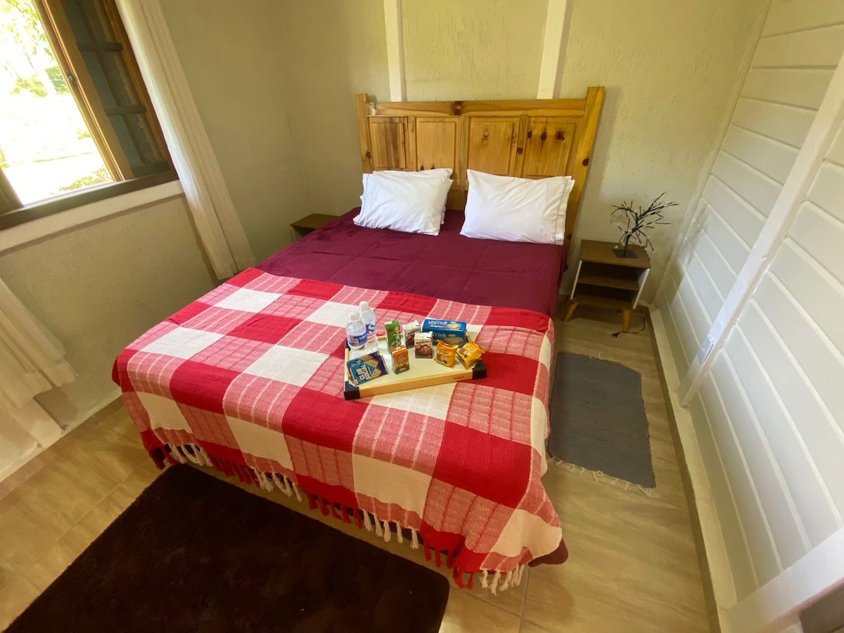 Ponovo se povežite sa prirodom u ovom nezaboravnom mestu. The GK hut located in the tangency of the forest has a charming entry and all internal comfort. Bračni krevet (širok 150-179 cm), kamin, dvostruka voda, termički čaršav, TV od 43inča, balkon s mrežom i predivnim pogledom i sa svim obezbjeđenjem i spokojem od 1 grma. Otvoreno 26. 4. 22. Pogledajte i još 2 jedinice. Za par: https://www.airbnb.com/h/chalesperpetuanatureza i https://www.airbnb.com/h/cabanadentrodaflorestand. Pristupite svemu pomoću asfalta