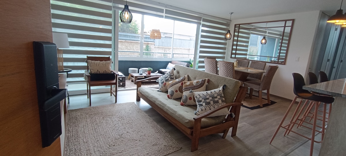 Povežite se sa prirodom na ovom nezaboravnom odmoru. Uživajte u miru i opuštanju ove prelepe kupole na ostrvu Negra. U ograđenom kondominijumu sa 24-satnim nadzorom. Parking za više od 1 vozila. Opremljena kuhinja, sa mikrotalasnom rernom, električnom rernom; 1 kupatilo i još jedan 1/2 sopstveni apartman; šporet na pelet; terasa i velika bašta. Alama. Dva bloka od obale, u blizini muzeja kuće Pabla Nerude, šopinga i šetnji prirodom.