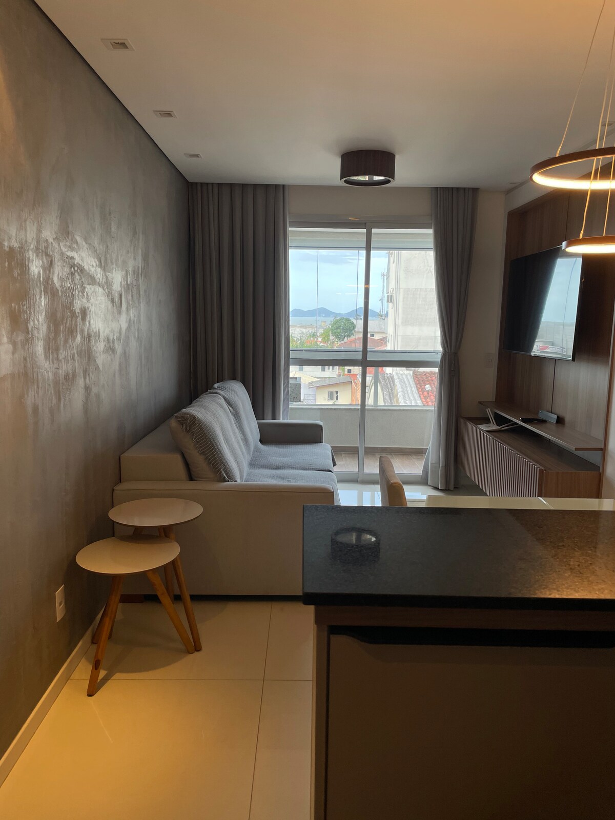 Uživajte u boravku u ovom elegantnom, potpuno novom i udobnom smještaju. Stan sa pogledom na more, izuzetno udoban i blizu svega, pijaca, apoteka, restorani, barovi i drugi sadržaji. Lagan i super opremljen namještaj koji će vam poželjeti dobrodošlicu i provesti dane uz lijepe uspomene na šire područje Florijanopolisa. Nalazimo se na 16. spratu ovdje u Kobrasolu, na putu do ostrva Floripa, a imamo i parking mjesto! Rezervišite odmah !!!