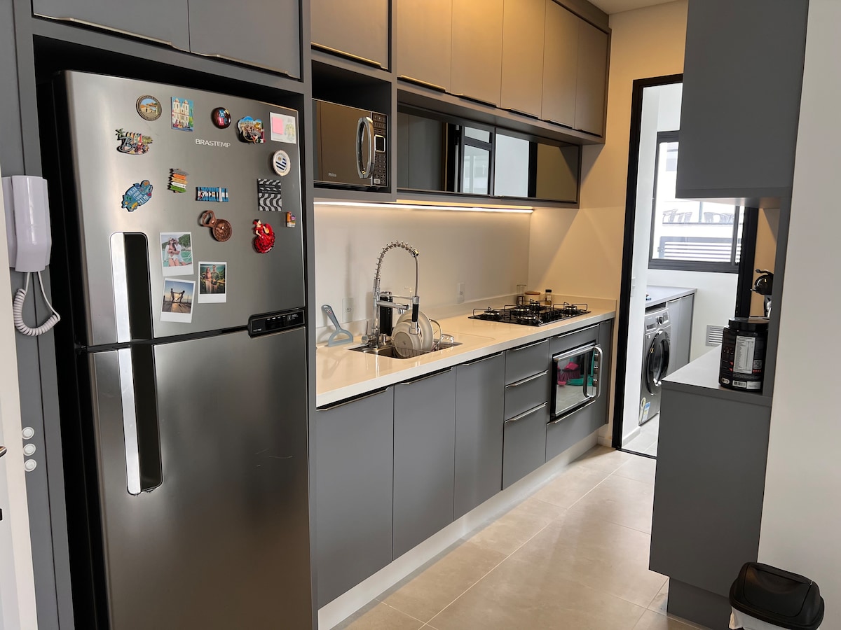 Ovdje ćete naći opuštanje i udobnost. Home Club Villas, najkompletniji i najbolje pozicionirani kondominijum u Sao Žozeu, u naselju Arejas. Stan se sastoji od 1 kupatila sa klima-uređajem, 1 spavaće sobe sa bračnim krevetom i ventilatorom, dva kupatila, balkona, vešernice sa mašinom za pranje veša, dnevnog boravka sa smart TV-om i klima-uređajem i potpuno opremljene kuhinje za vašu udobnost. Okolno područje: Plaža Kampeče – 25 min Beira Mar Norte Florianopolis 15 min Praia dos Ingleses 40 minuta Plaže Governador Selso Ramos 30 min