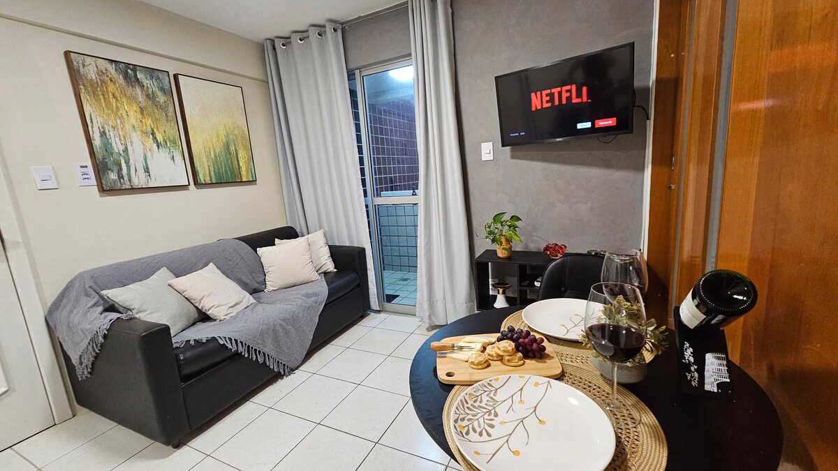 Apartamento 100% nascente, muito ventilado, de 57 m² com 2 quartos, sendo uma suíte, (2 banheiros) totalmente projetados e mobiliados. Com garagem. Localização estratégica: a 10 min da rodoviária, 14 min aeroporto, 5 min do shopping e 15 min das praias. Segurança, comodidade e muita ventilação, além de uma varanda perfeita para relaxar. Possui elevador. Condomínio solicita documento oficial com foto para cadastro de acesso. A recusa no envio impede a entrada e pode cancelar a reserva.