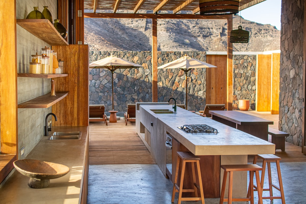 Ovaj elegantni smještaj ima jedinstvenu arhitekturu i dizajn, koji je dizajnirala svjetski poznata grupa arhitekta. Iskorišćeno kamenje dolazi iz lokalnih stijena, zbog čega izgleda kao da je vila podignuta u stijenama. Visoki plafoni, korišćeni materijali (unutrašnji i spoljašnji) i direktan pristup moru čine ovu vilu remek-djelo