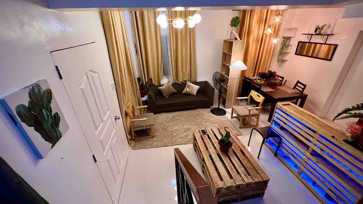 Vaša velika porodica će biti blizu svega kada odsjednete u ovom lijepom smještaju koji se nalazi u centru grada. Džejkobova kuća je vaš drugi dom. Može da primi 10-12 osoba. Ima 3 spavaće sobe i 3 bračna kreveta, uključujući klima-uređaj. Opremljen je Google TV-om od 55 inča sa Wi-Fi mrežom i Netflix-om. Ima topao i hladan tuš. Praktično dostupan svim javnim prevozom, na pješačkoj udaljenosti od parkova, 2-3 minute do tržnih centara KCC, tržnih centara Robinsons i tržnog centra SM.