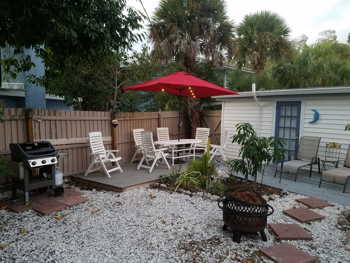*Siesta Key elevated villa at Solitude Suites on Siesta Key. *Your own detached private villa, located in a small resort. *Waterfront resort w/ heated pool, kayaks, table tennis & Tiki Hut. * Just a 10-12 min walk to award winning beach. *1 Bedroom w/King bed. *1 full bathroom w/shower. *Large kitchen, open living room, fully furnished inc towels & linens. *Private lanai w/ table & chairs. *Beautiful shared pool w/ sun shelf & waterfall. *2 min car ride to beach. *Updated!