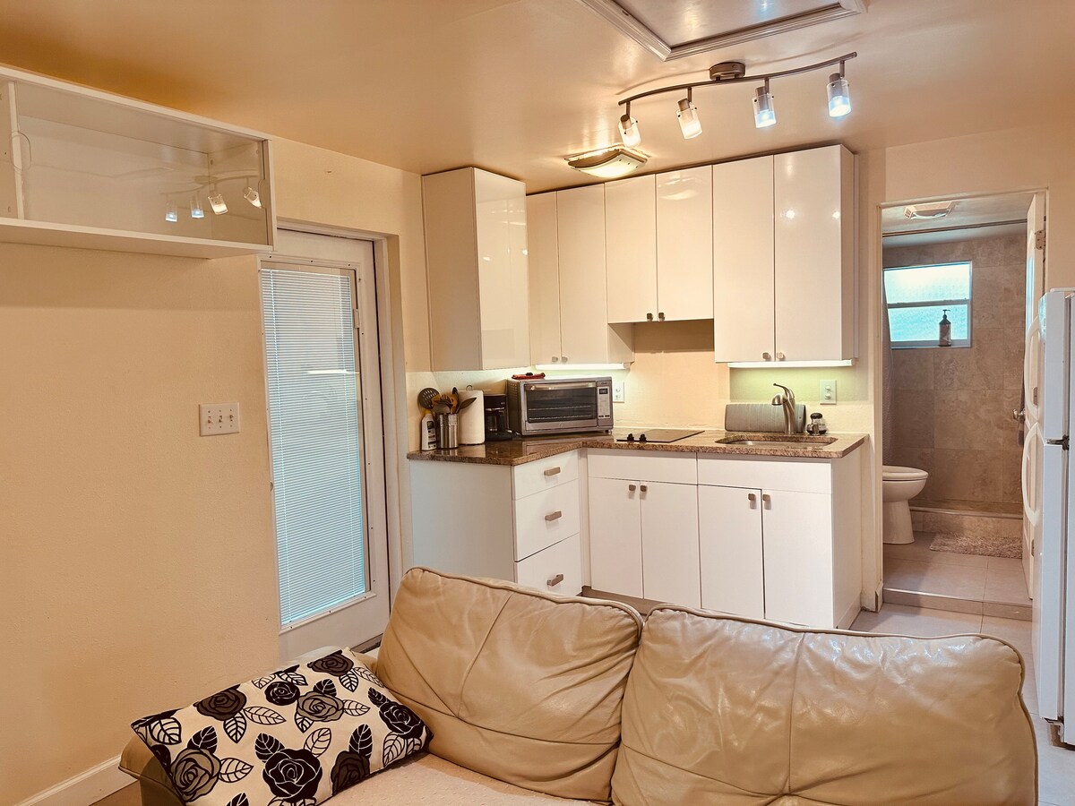 Šarmantni primarni apartman sa pravim starinskim šarmom Floride i privatnim ulazom kroz dvorište (nema pristupa glavnoj kući - mislite da je „svekrva apartman”). Samostalna prijava sa šifrovanom bravom. Zajednički lanai uključuje mašinu za pranje/sušenje veša i prostor za sjedenje. Mini frižider/zamrzivač, mikrotalasna rerna, aparat za kafu Nespresso, kuvalo za vodu. Vrč za filtriranu vodu. TV sa Netflix-om. Wi-Fi. Bračni krevet (širine 150-179 cm), mali radni sto. Privatno kupatilo sa bideom i spoljnim umivaonikom i tušem. Podesiva klima-uređaj u sobi