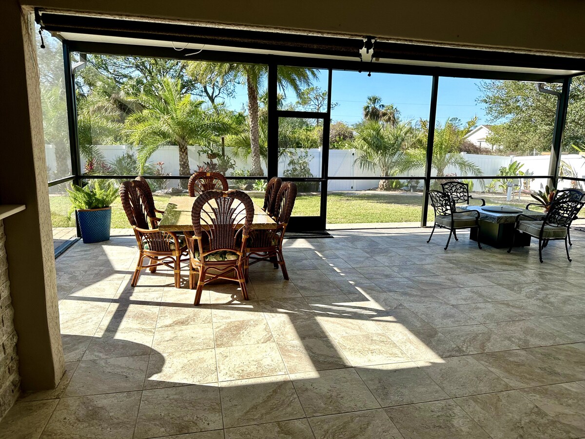 Welcome to Villa del Sol ☀️ A peaceful resort style outdoor space + private + oversized solar heated pool creates a perfect vacation oasis. Covered lanai = shade. BBQ & watch your favorite sports on 55” outdoor tv. Walk the golf cart paths, swim laps, get a tan, read a book, play music & games, sip on tropical drinks & float all your cares away. Pretty sunsets overlooking a serene park-like setting. A.M. coffee outside to hear the birds sing. Carefree outdoor living is what it’s all about here.