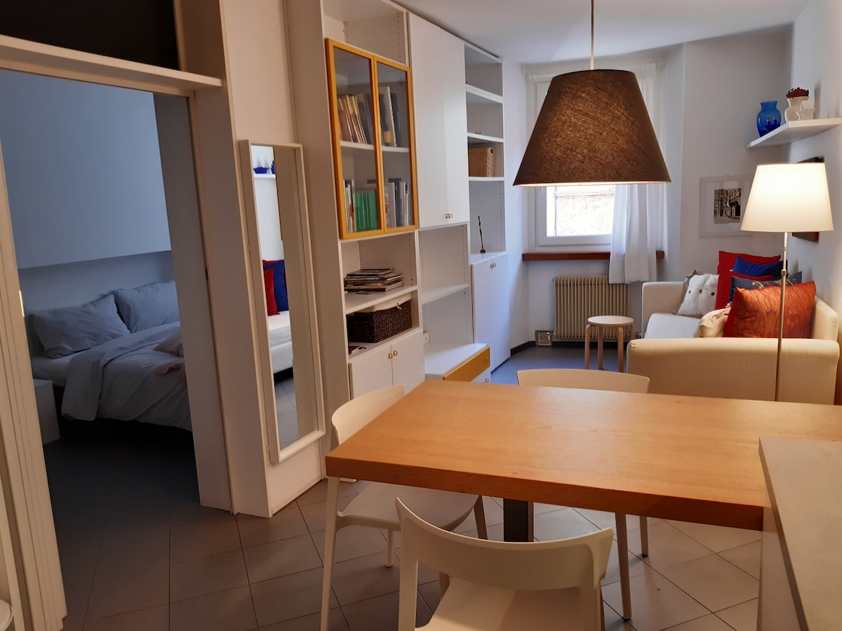 U srcu istorijskog centra, u blizini trga Piazza Fiera i Piazza Duomo, na prvom spratu istorijske zgrade sa liftom. Nedavno renoviran stan površine 62 m2. Kupatilo sa tušem i mašinom za pranje veša je na Čajna kuhinja sa mašinom za sudove, rernom, mokom, aparatom za kafu, indukcijskom pločom. Dnevni boravak sa kaučem na razvlačenje, SmartTv-om i Wi-Fi mrežom. Soba sa bračnim krevetom. U blizini su železnička/kurirska stanica, muzeji i božićne pijace. Predstavite sedište za bicikle unutar zgrade.