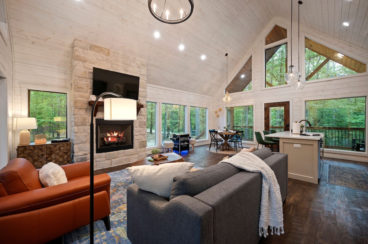Pobjegnite u Gentle Creek, modernu rustikalnu brvnaru u Hochatownu, savršenu za dvije osobe. Ovaj luksuzni smještaj ima veliki bračni krevet, unutrašnji/vanjski kamin, privatnu hidromasažnu kadu i punjač za električna vozila Tesla (kablovi za punjač nisu obezbijeđeni). Smještena u borovoj šumi, a samo nekoliko minuta udaljena od atrakcija, idealna je za proslavu posebne prilike ili jednostavno opuštanje u spokojnoj prirodi.