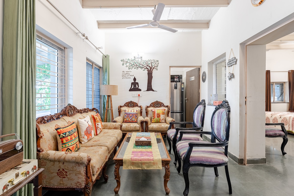 India’s first-ever FRIENDS TV Series-themed homestay!! A replica of Monica's apartment from the iconic TV Series. Think Monica’s kitchen, purple living room, the iconic yellow frame, bedroom with the Russian painting, a foosball table... and a whole lotta nostalgia! TOTALLY INSTA-WORTHY The same iconic Friends apartment, with vintage flair, cozy corners & vibrant pops of purple. Step into the Greek-themed terrace overlooking the lush golf course with have a rooftop Jacuzzi (paid service).