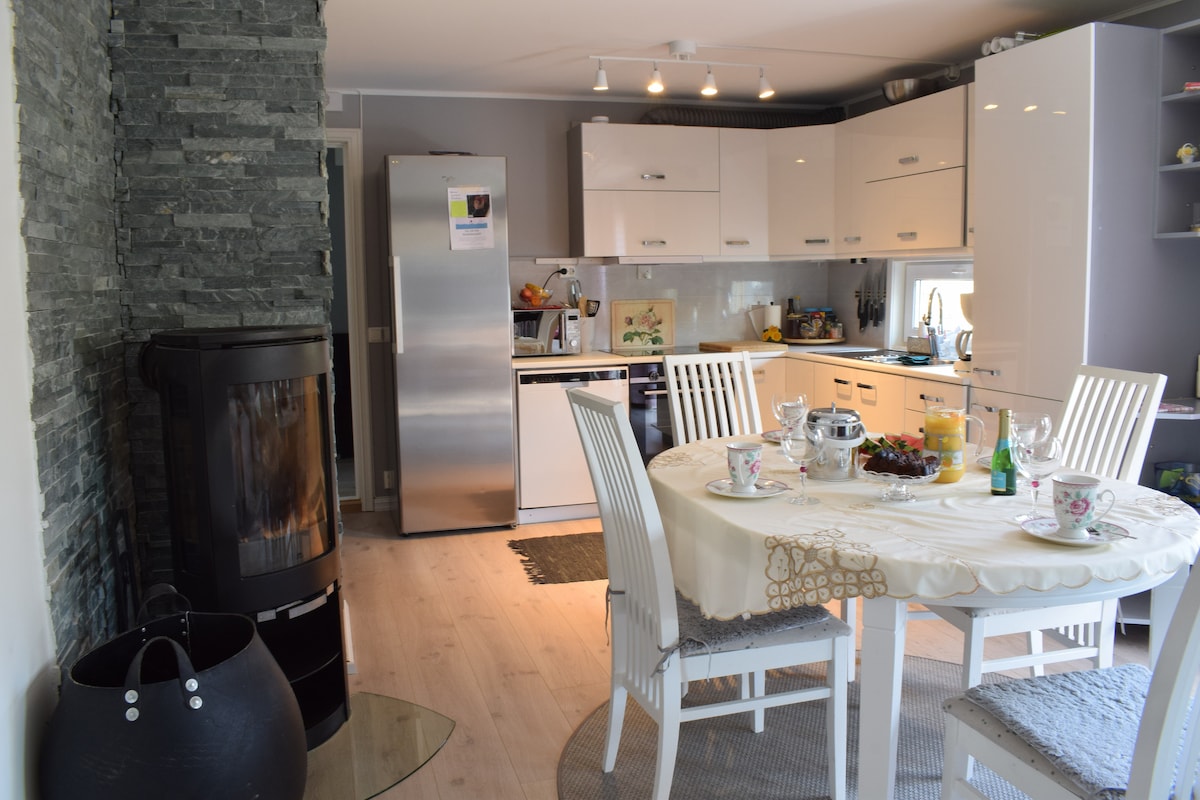 Usred neverovatno šarmantnog Starog grada u Fredrikstadu, živećete u modernom, udobnom i toplom stanu od 90 kvm u zgradi iz 1794. godine! Zaseban ulaz sa ulice, parket, grejni kablovi u kuhinji i kupatilu. Kamin, 2 prostrane spavaće sobe, veliki dnevni boravak i udobna kuhinja sa velikim trpezarijskim stolom, udobno kupatilo sa kadom/tuš kabinom, mašina za pranje veša, mašina za sušenje veša, Wi-Fi, TV od 75 inča. Jedna spavaća soba sa bračnim krevetom i jedna soba sa krevetom za jednu osobu sa krevetom na razvlačenje, a veliki dnevni krevet u dnevnoj sobi takođe ima prostora za jednu ili dve osobe.
