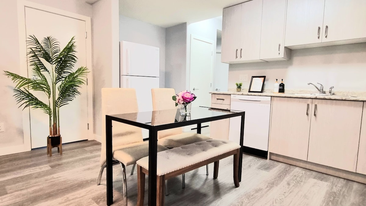 Predivan, izuzetan apartman bez dima koji se nalazi u jednom od najbezbednijih delova grada Saskatoona. Nalazi se na samo 4 minuta vožnje od glavnih restorana i prodavnica, uključujući: ☞ Starbucks ☞ Tim Hortons ☞ McDonald 's ☞ Dominos Pizza ☞ Odvojeni ulaz za vašu privatnost i beskontaktnu prijavu. Grejači na dasci u svakom prostoru! Bez obzira na to da li je za noćenje ili cijeli mjesec, sigurni smo da ćete uživati u ovom privatnom apartmanu!