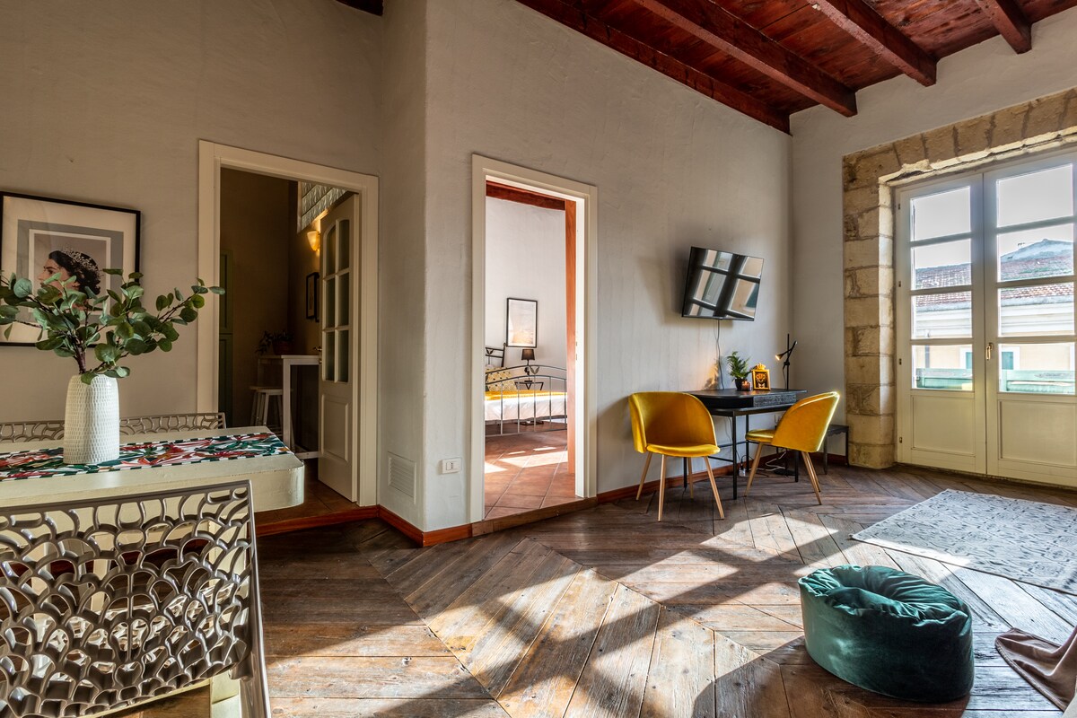 Svijetli i udobni stan, u istorijskom centru. Stan se nalazi u blizini Piazza Università i bolnice, iza Duoma, idealnog za odmor, posjetu centru grada ili plažama (stanica na 850 metara). Moderan i kvalitetan namještaj. Potkrovlje ima dvokrevetnu spavaću sobu na međuspratu, dnevni boravak sa terasom, udoban kauč na razvlačenje, trpezarijski sto, kuhinju sa indukcijom, TV, mašinu za sudove, mikrotalasnu pećnicu, klima-uređaje, tuš-kabinu, fen za kosu, besplatan Wi-Fi.