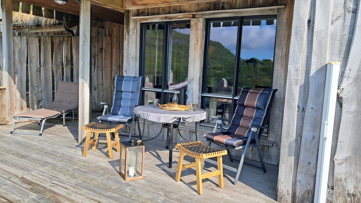 Lite Studio på 14m2 med alt du trenger. Den er i nærheten av nydelige strender, familievennlige aktiviteter som bading, strandvolleyball, fiske og ikke minst fantastiske turmuligheter i mark og fjell direkte fra hytta. Vi har Standup paddleboards (SUP) som kan lånes gratis. Eget privat uteområde med spiseplass, grill, hengekøye og vedfyrt bålpanne. Hytta har utedusj, kjøkken, toalett og dobbeltseng. Det er i nærheten av offentlig transport og butikk