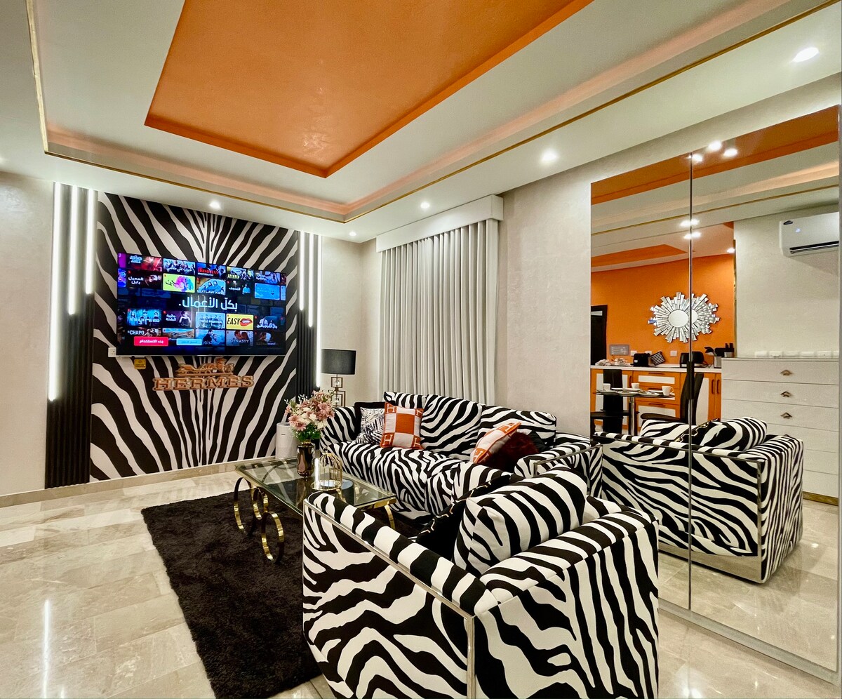 غرفتين نوم وصالة حديثة شاشة 75بوصة