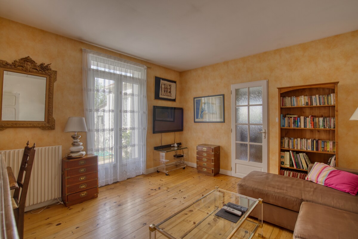 Dobro došli u našu šarmantnu istorijsku vilu na obali rijeke Seudre, smještenu u srcu termalnog parka Saujon, samo 100 metara od poznate termalne banje i 2 minuta hoda od svih prodavnica. Idealno za opuštajući odmor, naše kratkoročno iznajmljivanje sa baštom nudi jedinstveno okruženje koje kombinuje modernu udobnost i šarm starog svijeta, bez komšija za potpuni mir.